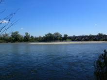 Le Vieux Rhône entre Pont Saint Esprit et Mondragon. Sur le secteur, on retrouve des plages de galets, devenues très rares dans le Rhône Aval, et une ripisylve mature en rive gauche.