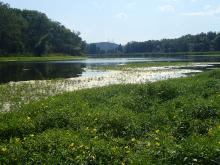 Les plans d’eau de Lamiat, au Sud. Anciens bassins d’extraction de granulat, 3 lacs interconnectés structurent cette partie du site.
