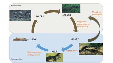- Habitats : Aquatique en période de reproduction (de mars à juillet) et terrestre entre août et février