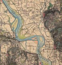 Les aménagements du Rhône sont apparus dès le Moyen Âge mais étaient alors peu efficaces. C’est à partir du XIXem siècle que de grands travaux sont entrepris afin de favoriser le trafic fluvial. Des épis transversaux, des digues longitudinales ainsi que des casiers, appelés aménagements Girardon sont alors construits sur le Rhône. Leur principale fonction est de définir et de figer un chenal de navigation, latéralement et verticalement, en limitant l’érosion des marges et en favorisant la sédimentation en leur sein. Des digues de protection contre les inondations, réputées insubmersibles, sont également crées au cours du XIXem siècle. Enfin, la construction d’usines hydro-électriques au milieu du XXème siècle entraîne également une modification profonde de la morphologie du fleuve.